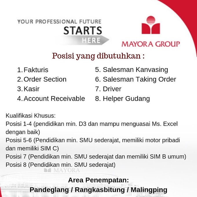 Jul 23, 2021 · apabila anda memenuhi kualifikasi pt mayora indah tbk tersebut saudari bisa melamar ke bkk yayasan penyalur kerja yang bekerjasama dengan pt mayora indah tbk via email.